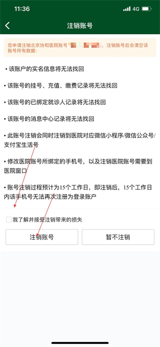 4、在注销账号页面勾选我了解并接受注销带来的损失,点击注销账号。