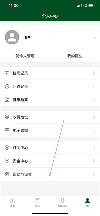 2、在个人中心页面点击帮助与设置,进入帮助与设置页面。