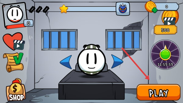 1、点击界面右下角PLAY,操控卡通角色开始关卡,在监狱场景出发,目标收集星星、金币。