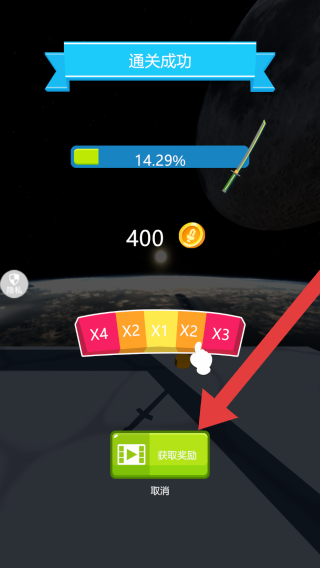 3、显示本关通关成功,获得金币400的奖励,也可以点击下面的增益进行提升奖励的翻倍。
