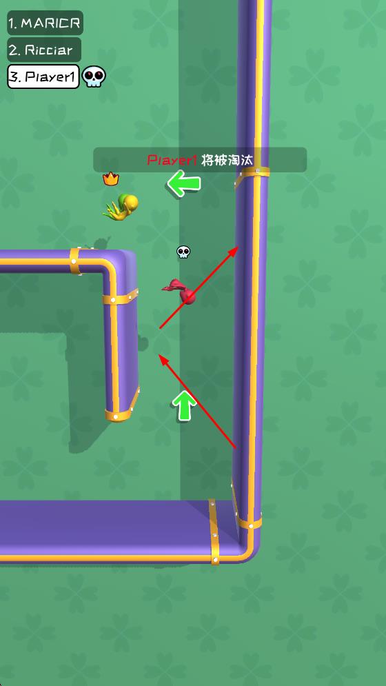 2、根据箭头指示调整移动方向,灵活穿梭于赛道拐角处,尝试超越其他对手。