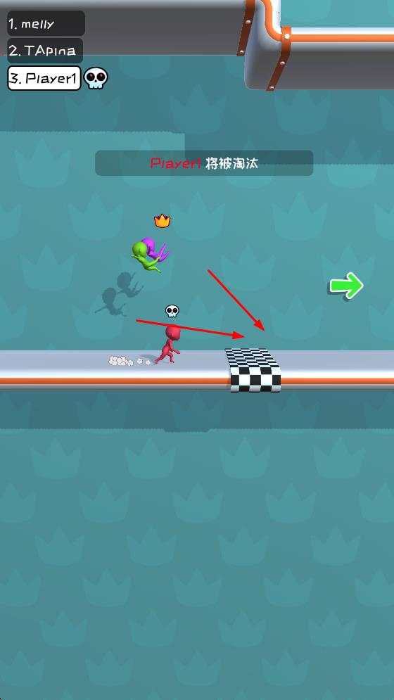 3、全力冲向黑白格终点线,争取获得更靠前的排名,体验多人竞技跑酷的刺激乐趣。