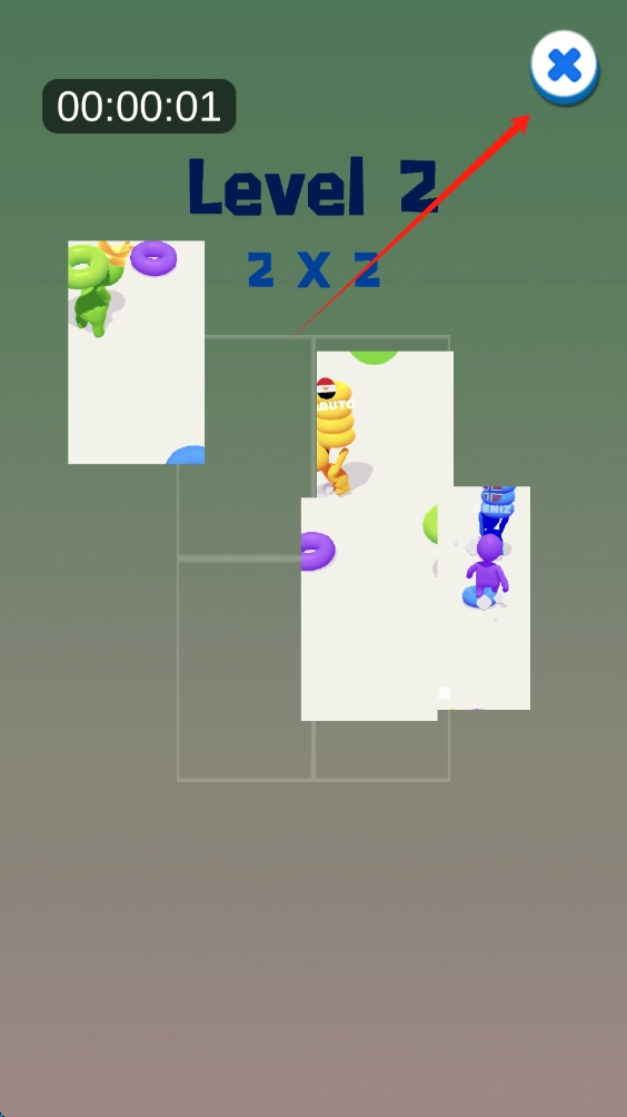 3、进入第二关,延续2×2布局模式,若需退出当前关卡,点击右上角叉号即可。