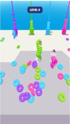 1、同色戒指堆叠通关:将相同颜色的戒指放在同一根柱子上即可顺利通关,整体规则清晰,操作起来并不困难,新手掌握核心玩法。