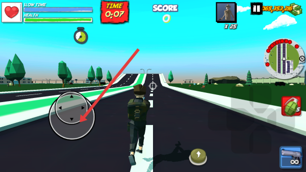 1、进入游戏,用虚拟摇杆控制移动,点击射击键攻击敌人,查看右侧地图的红点,优先赶往敌人密集区域。