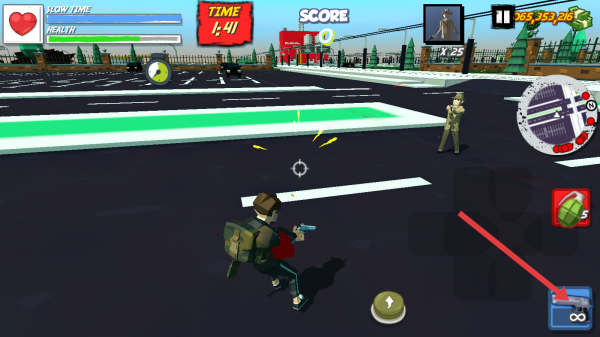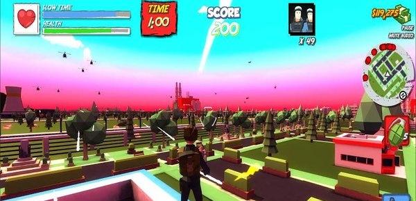 2、善用慢动作的功能,遇大量敌人或危险时引发,进行精准的射击,血条低的时候,找掩护的物体或拾取血包。