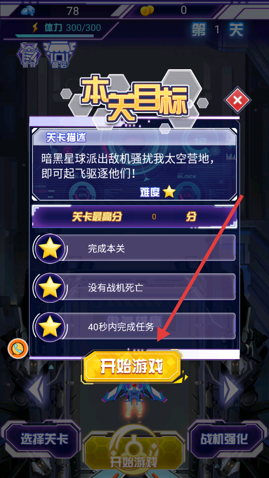 3、击败关卡BOSS获取稀有材料,强化战机属性与技能。
