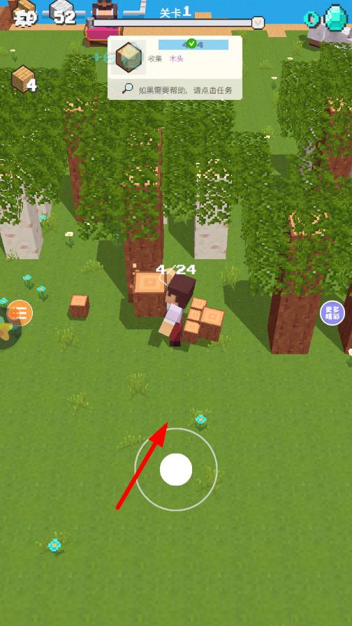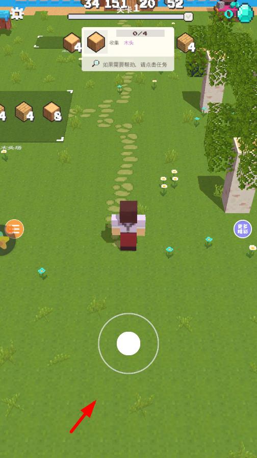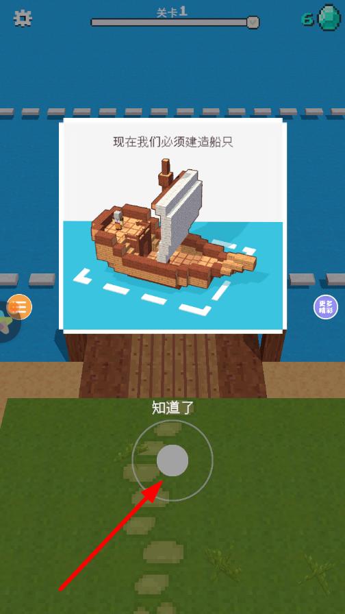 1、进入游戏后,在初始地图点击地面采集基础方块,拖动方块到目标位置搭建初始小屋,作为探索与建造的起点。