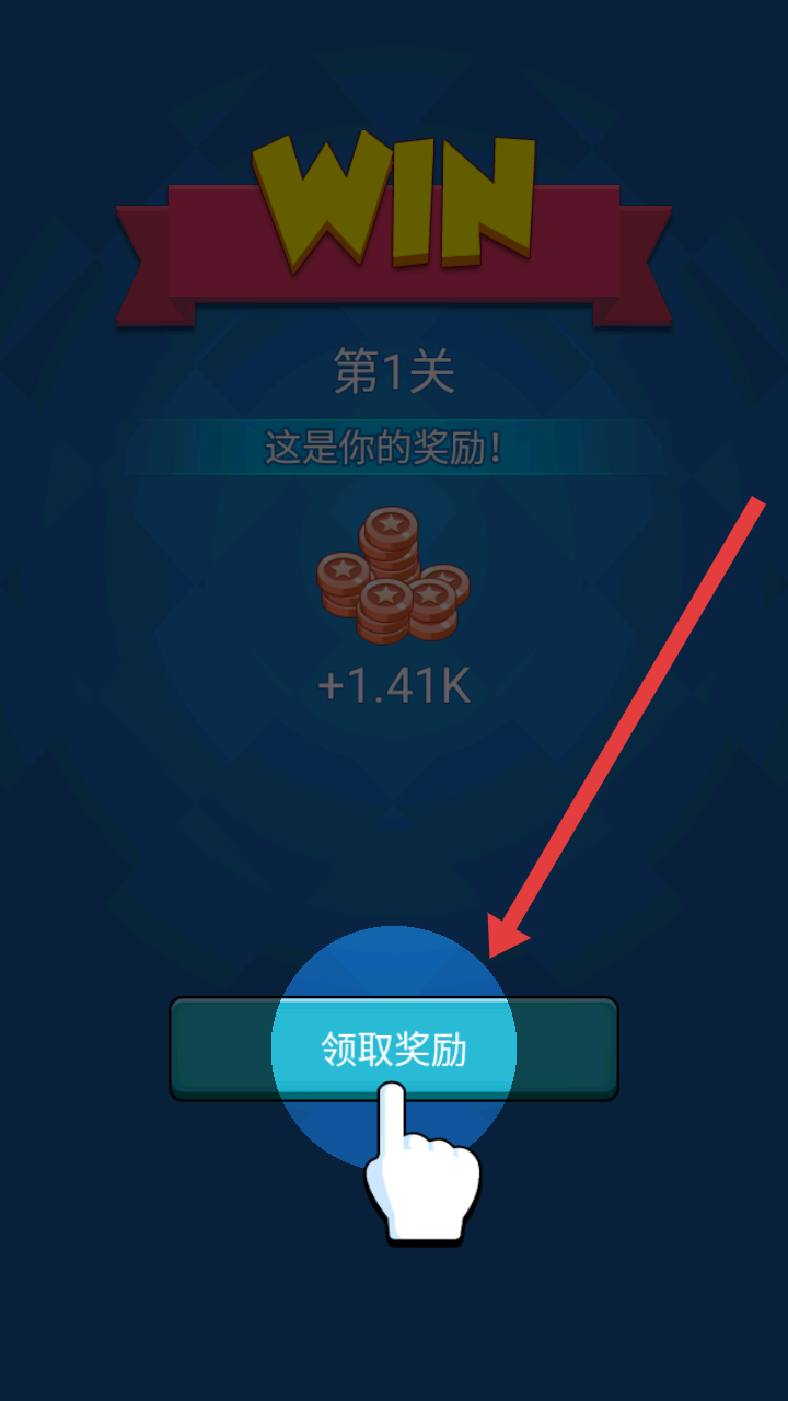 3、剿灭所有怪物关卡胜利后,需要点击领取奖励的按钮,可以获取金币+1.41K,积累自身的金币资源。