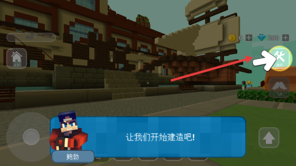 1、点击主界面开始按钮进入游戏场景,在画面中找到带有建筑图标的功能按钮,点击后触发系统弹出的开始建造新手引导提示。