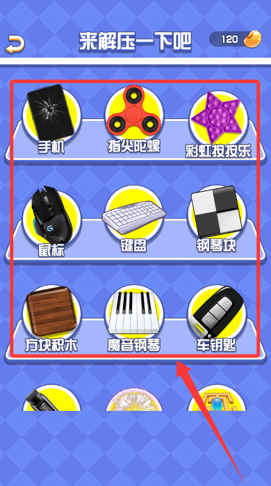 2、个性化道具收藏系统,包含造型独特的解压玩具,按照材质、触感和声音分类整理,可创建个人收藏夹,快速找到解压道具。