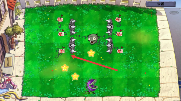1、进入迷你的游戏页面,观察的僵尸位置与目标之间的布局,参与者需要预判滚动的路径。