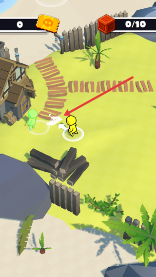 2、切换场景到岛屿,跟随指引与黄色小人等NPC交互,接取新任务,探索区域解锁建筑、道具。