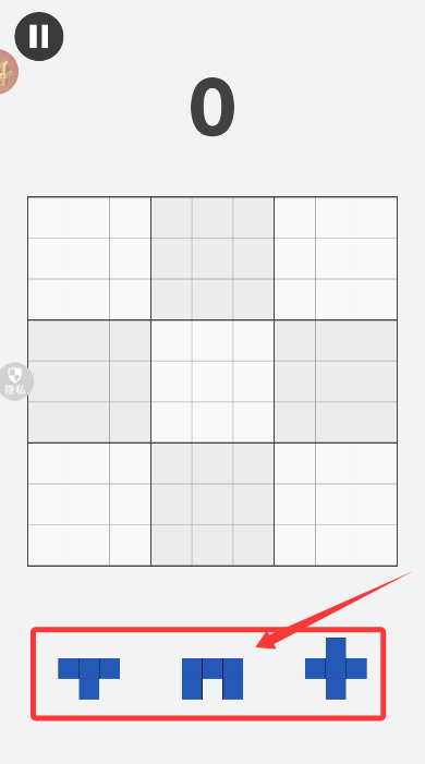 2、系统随机生成蓝色几何模块,从中挑选最匹配当前空缺的部件。
