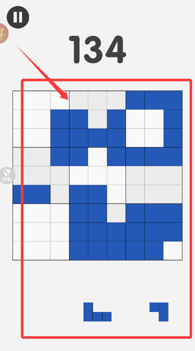 3、将选中的模块拖放至网格区,完整填满行达到消除即可获得积分奖励。