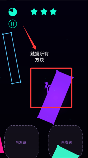 1、进入关卡后先观察彩色方块的排列和移动规律,找准它们的间隔节奏,为下一步跳跃做好准备。