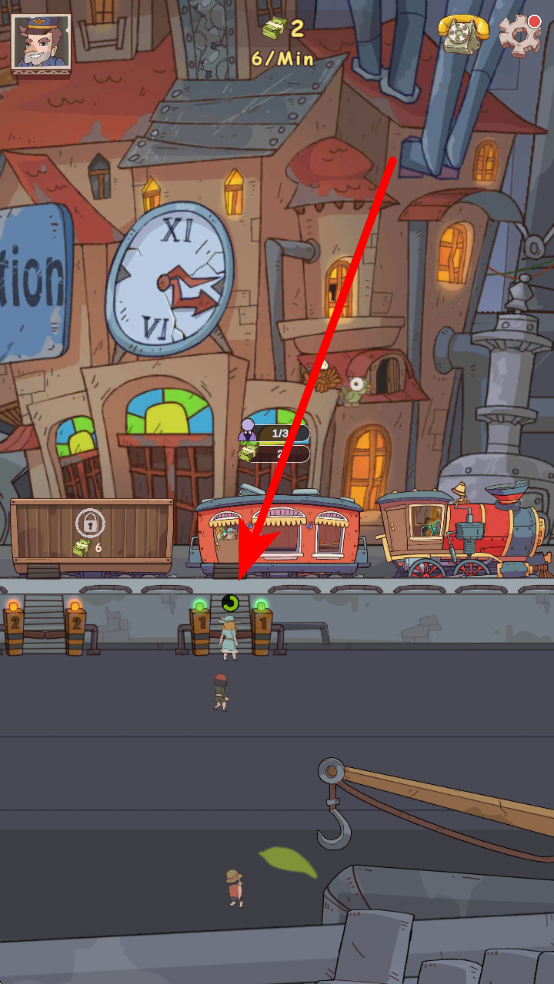 1、当看到红色箭头指向站台区域时,此时会有小人来到站台,他们可能是等待乘车的乘客,这一步是推动游戏中人员流动和后续任务进展的重要环节。