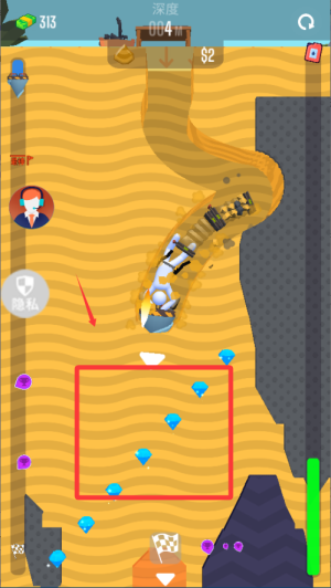 2、动态地形生成技术,每局游戏都会产生全新的矿脉分布。特殊地质层需要对应钻头才能开采,促使玩家灵活调整策略。