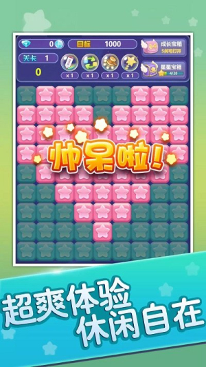 2、操作简单易上手,玩家只需通过简单的点击或滑动操作就能完成星星消除,无需复杂学习过程,可以随时随地享受游戏乐趣。