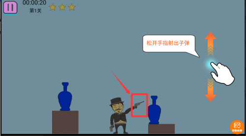 1、通过滑动屏幕控制武器方向,瞄准白色方块头或蓝色花瓶等目标,点击发射完成攻击。操作直观易学,但需要一定技巧才能精准命中。