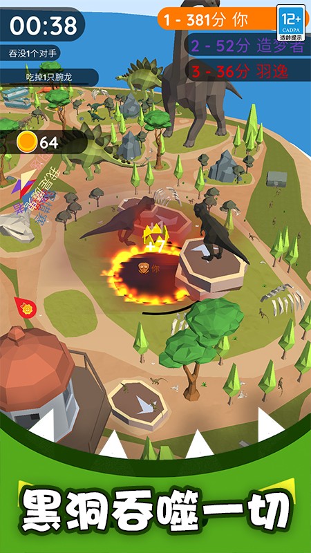 2、注意观察地图上大型设施的位置,在时间结束前规划好行进路线,利用已有体积吞噬更大目标提高效率。