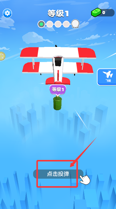 1、启动游戏后,驾驶战机飞行至目标区域,点击投弹键释放炸弹。