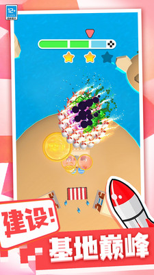 2、动态成长系统,通过收集资源升级武器装备,从基础导弹到终极核弹,武器威力呈现从小型战机到空中霸主的成长历程。