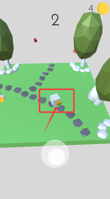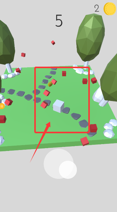 2、在丛林场景中,控制方块沿着石板路前进,避开彩色障碍物。