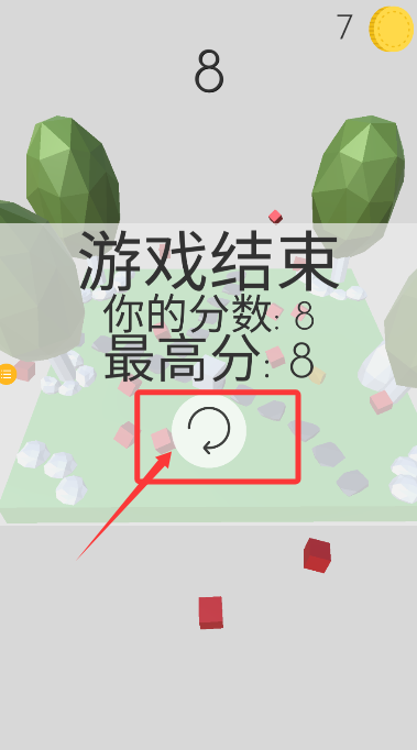 4、挑战失败后查看最终得分,可立即点击重新挑战按钮再试一次。