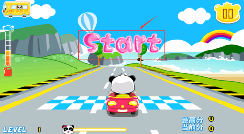 3、点击红框START区域,驾驶熊猫赛车开始比赛。