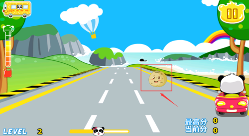 4、收集红框笑脸道具,提升熊猫赛车经验值。