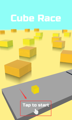 1、点击红框Tap to start区域,开始立方体竞速游戏。