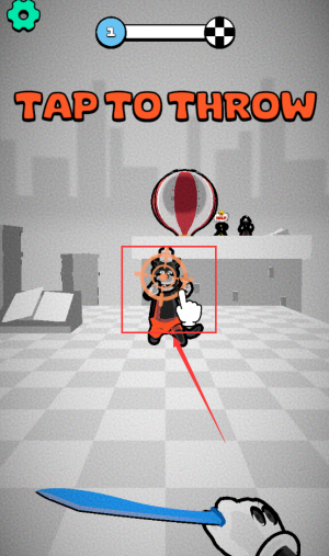 2、瞄准红框橙色准心角色,点击投掷飞刀攻击目标。