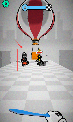 3、击中红框黑帽火柴人,解救热气球上的求助工人。