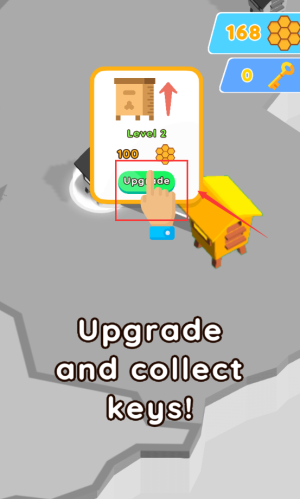 2、点击红框升级按钮,消耗100资源提升蜂箱等级。