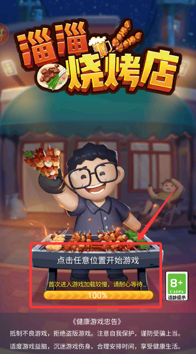 1、启动游戏后轻触屏幕,等待进度条加载完毕,正式踏入烧烤创业之路。