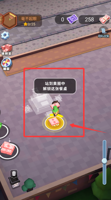 2、移动角色至标记区域,激活全新用餐席位,逐步扩大店面接待能力。