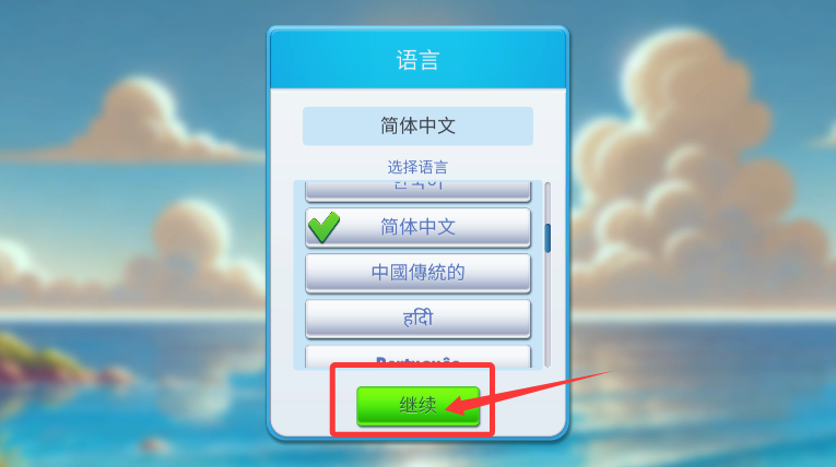 1、初次启动时,在语言选项中选择中文并确认,完成界面设置。