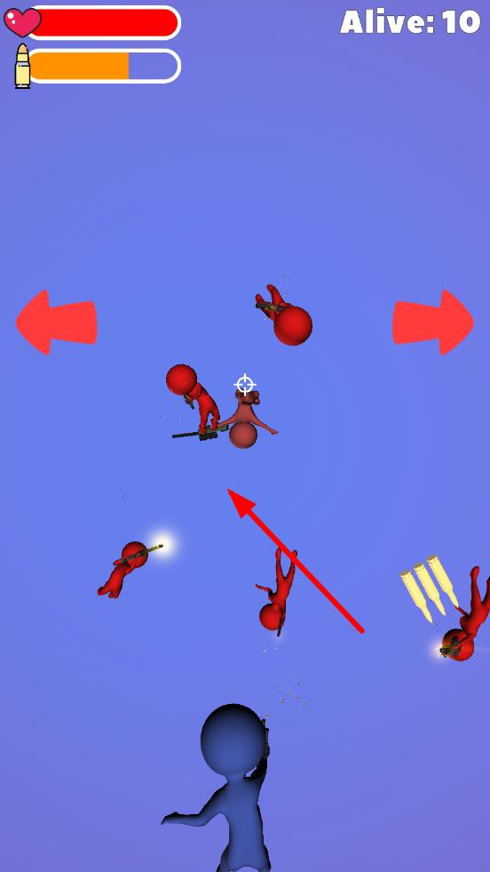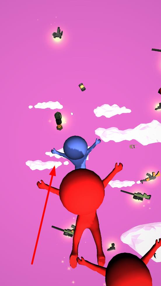 2、空中遭遇红色敌人,将准心对准敌人,点击屏幕射击,利用武器射程与弹药量压制对手,维持空中生存,将其他红色敌人都消灭。