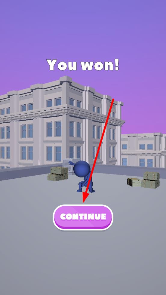 1、进入关卡,角色跳伞下落,滑动屏幕控制移动方向,抓取高伤害的武器,避开敌人发射的弹药,逐步积累战斗装备,为之后的对战做准备。
