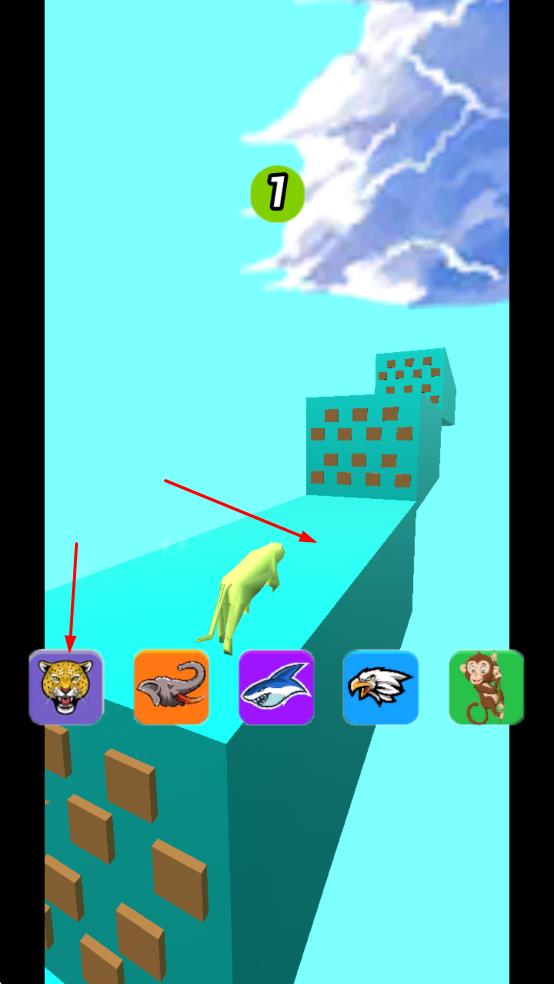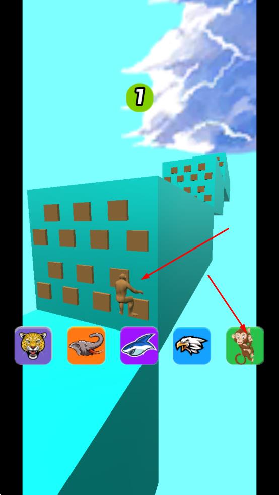 1、处于对应关卡场景如第一关的爬墙场景,点击下方动物图标猴子、豹子、蜘蛛等,角色变身为该动物并获得对应能力如猴子的爬墙能力,开启关卡挑战。