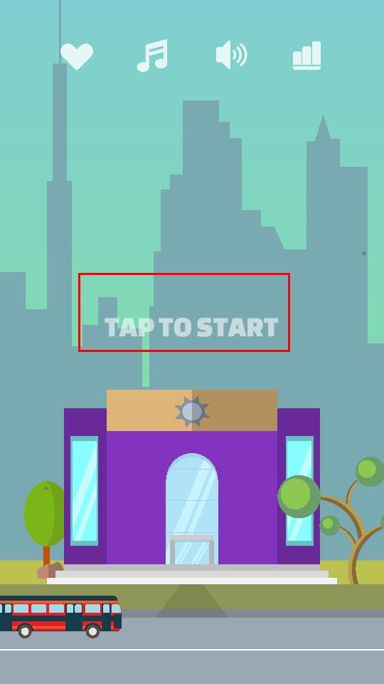 1、在主界面点击中间TAP TO START按钮,背景为城市建筑群,下方紫色建筑作为基础,正式开启建筑堆叠挑战。