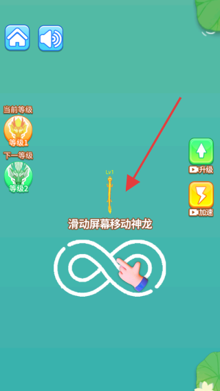 2、进入游戏后,根据提示滑动屏幕移动神龙,提升神龙等级,解锁新的形态,完成任务目标。