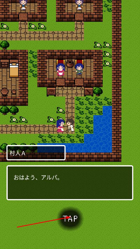 1、进入はじまりの街,点击TAP与村人A对话显示おはよう、アルパ。交互,推进剧情,正式去开启村庄探索。