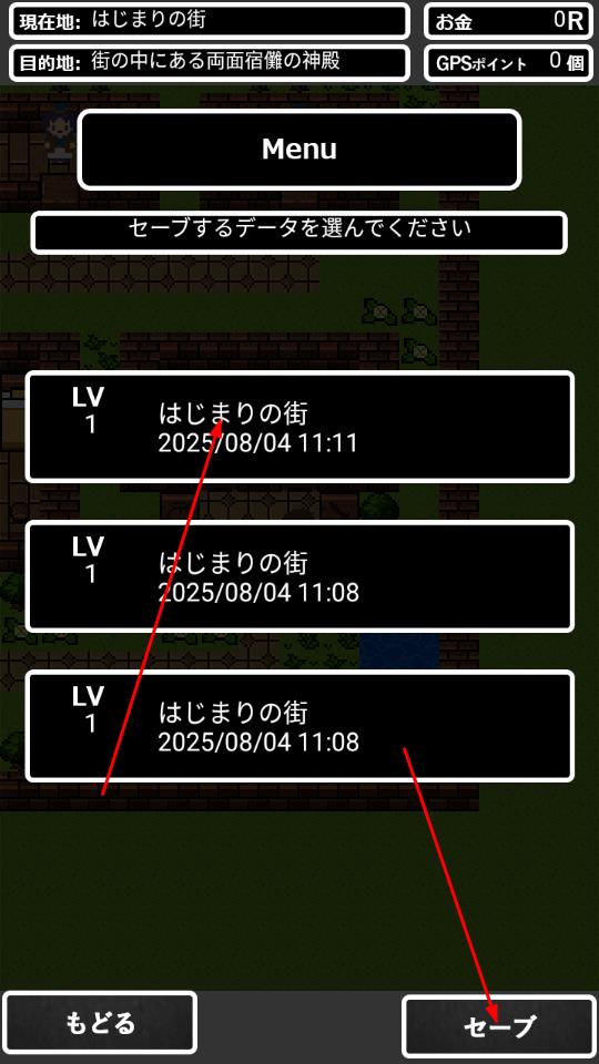 3、进入菜单界面,选择はじまりの街的存档记录,点击セーブ按钮保存游戏进度,方便后续继续冒险。