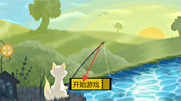 1、进入游戏后,首先看到小猫钓鱼的场景,点击画面中间的开始游戏按钮,开启钓鱼之旅。