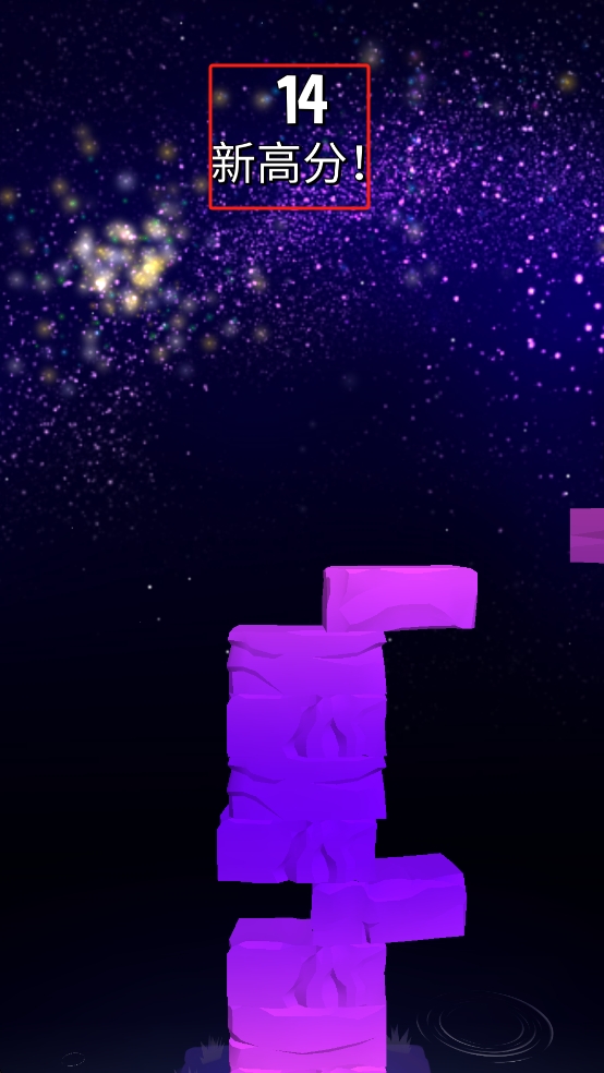 2、高度挑战玩法:通过连续成功跳跃不断堆叠方块,努力突破自己的最高高度纪录,随着高度上升,方块出现的速度随机增加,挑战难度逐步提升。
