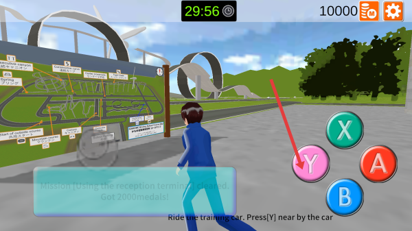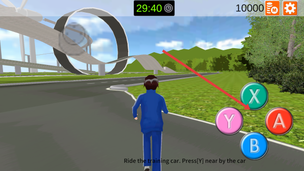 3、前往训练车途中,留意界面提示,到达车辆旁Y键乘坐,若操作有误,重新调整位置再次尝试。