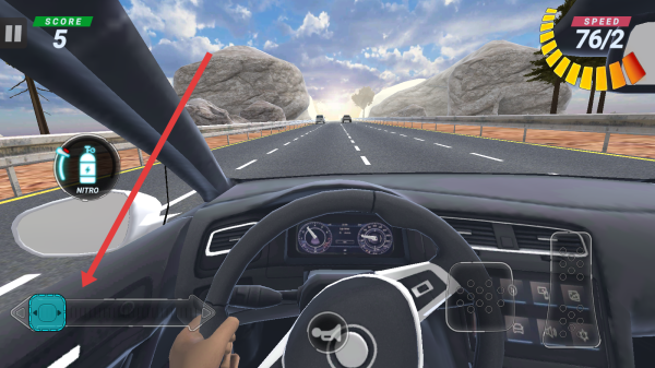 3、滑动左下角的滚轮操控左右移动可以点击左侧NITRO图标使用氮气加速,提升车速,助力在赛道上获取更高分数。