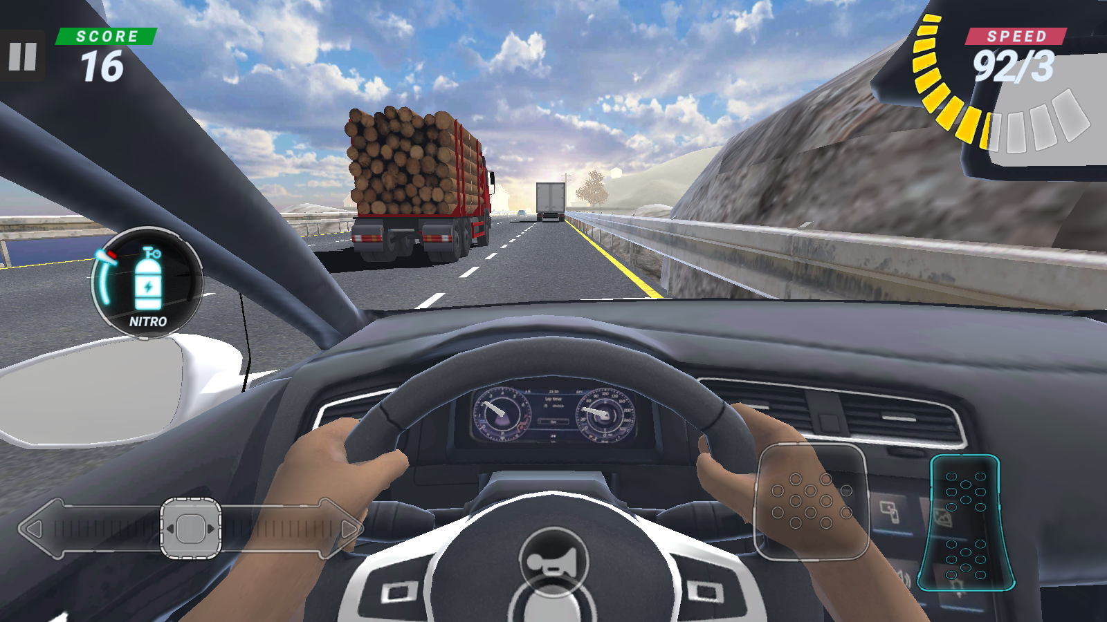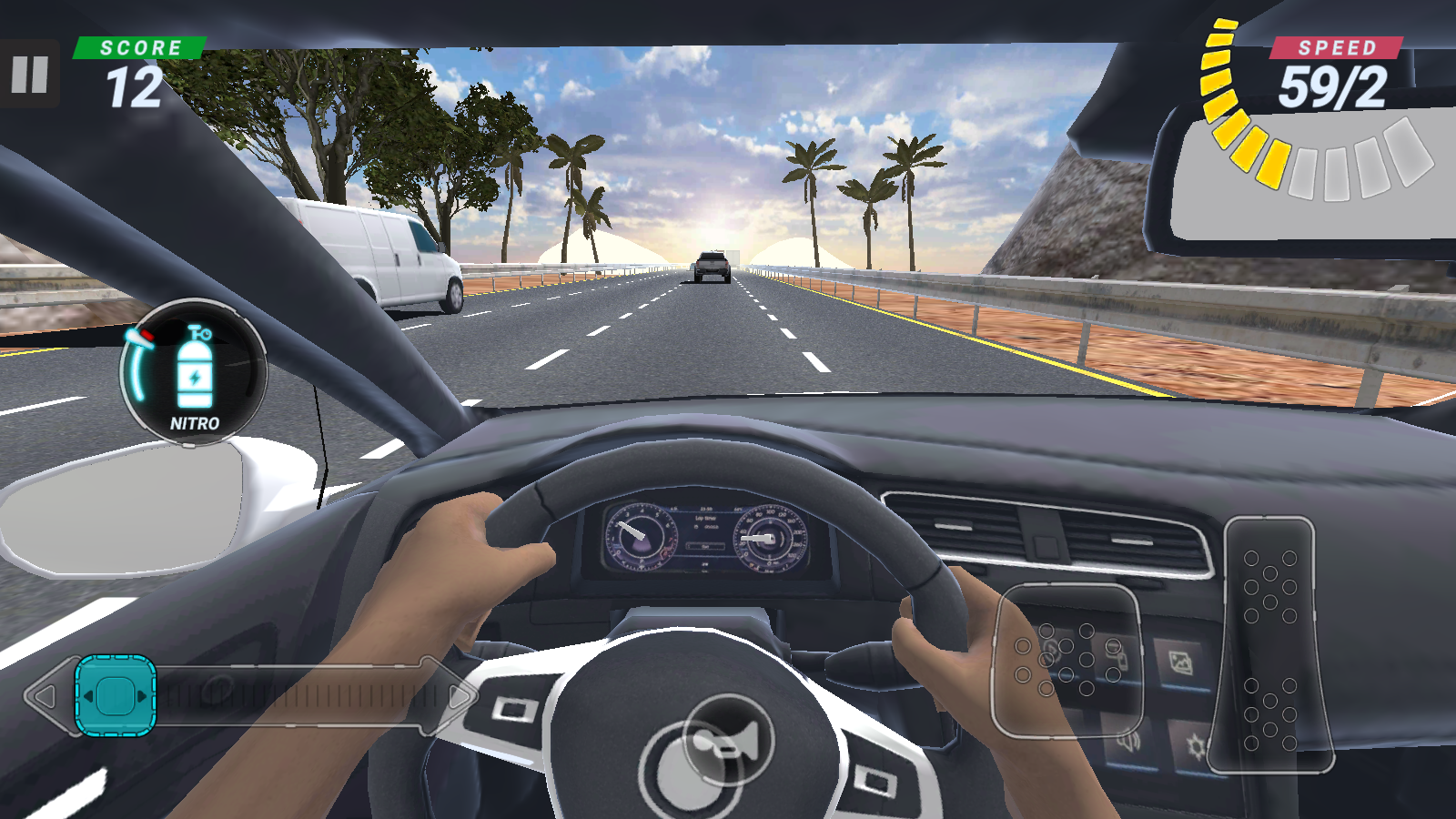 1、公路竞速与车辆应对:驾驶赛车在公路赛道上竞速,需时刻关注前方行驶车辆,通过灵活转向、加速超车避让,保持高速冲向终点,考验实时应变能力。